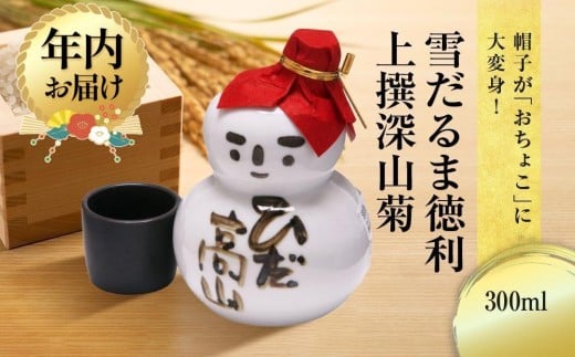 地元で昔から飲まれている人気銘柄の「深山菊」が雪だるま型の徳利に入ってます