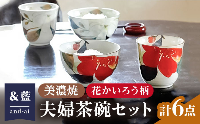 ペア 和柄 お祝い プレゼント 茶碗 湯呑 ギフト 【いつまでも仲睦まじく】【美濃焼】「&藍」and-ai 夫婦茶碗セット『花かいろう』柄 食器 花柄 ご飯茶碗 多治見市/エー・アイ [TAG001]