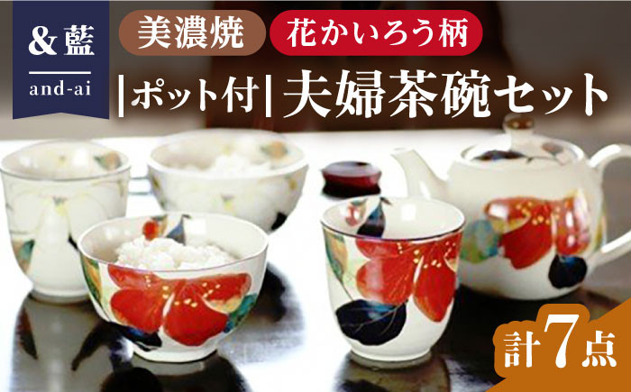 ペア 和柄 お祝い プレゼント 茶碗 湯呑 箸 ギフト 【いつまでも仲睦まじく】【美濃焼】「&藍」 ポット付夫婦茶碗セット『花かいろう』柄 食器 花柄 急須 ティーセット 多治見市/エー・アイ [TAG004]
