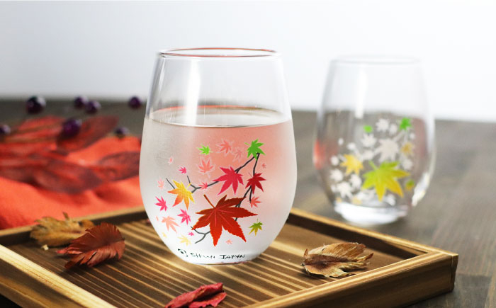 冷感シリーズ第三弾『愛でる野山の錦』冷感紅葉フリーグラスペアセットシリーズ最大の色変化革命!