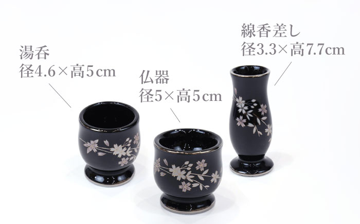 法具 仏壇飾り 黒 ブラック モダン \仏具もおしゃれに/【美濃焼】 仏具花柄 6点セット 香炉灰付 『銀襴さくら』 インテリア 仏壇 お供え 多治見市/佐々木陶器 [TAJ019]