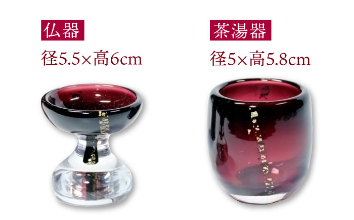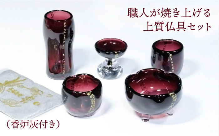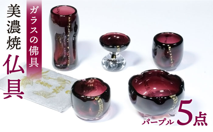 法具 仏壇飾り 硝子 ガラス おしゃれ \職人が焼き上げる/【美濃焼】 仏具 5点セット ガラスの佛具 『パープル』 インテリア 仏壇 お供え 多治見市/佐々木陶器 [TAJ022]