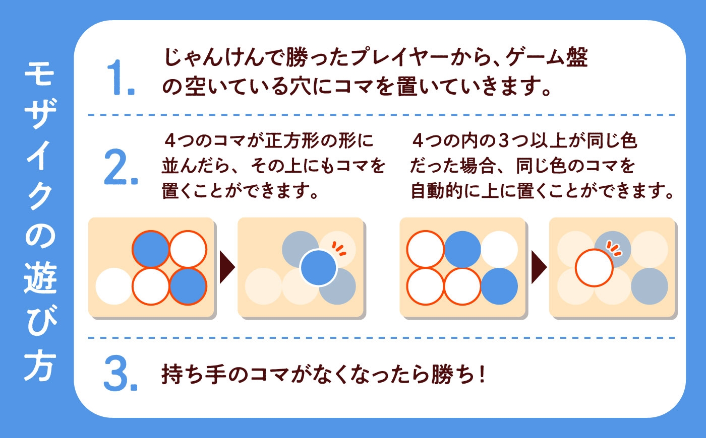 「モザイク・ミニ」は、ご好評いただいている2人用のボードゲーム「モザイク」の小型版です。