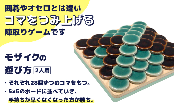 ※お送りする商品は、美濃焼ボードゲーム「モザイク・ミニ」ですので、持ち駒の数とボードの大きさが異なります。