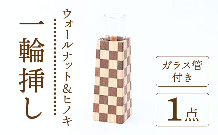 花器 木製 木工 ガラス インテリア ナチュラル アップサイクル リサイクル 【ナチュラルインテリアにぴったり】木らり ウオールナット&ヒノキ 市松模様 四角錐 一輪挿し(ガラス管付き)【有限会社山本木工所】≪多治見市≫ 雑貨 インテリア 花瓶 [TBF003]