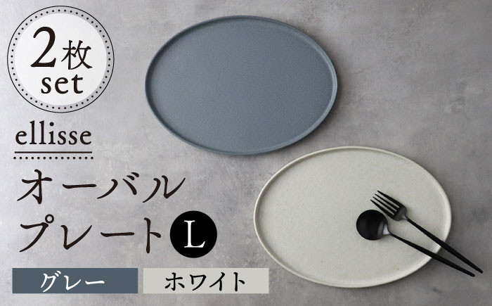 器 うつわ 大皿 パスタ皿 ワンプレート 灰色 白 おしゃれ 【シンプルで上品な佇まい】【美濃焼】 ellisse-エリッセ- オーバルプレート L 2枚 ペアセット グレー・ホワイト 食器 楕円皿 セット 多治見市/山忠安藤陶器 [TCP003]