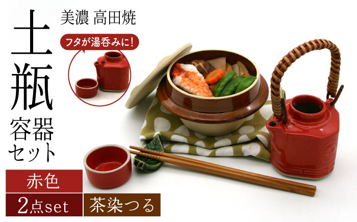 土瓶 セット 美濃焼 高田焼 焼き物 お弁当 駅弁 炊き込みご飯 鉄道 釜飯 \思い出す懐かしい汽車旅/【美濃焼】高田焼 駅弁 容器 セット (赤色) 茶染つる【まる忠】≪多治見市≫ 食器 急須 ポット 湯呑 [TCN017]