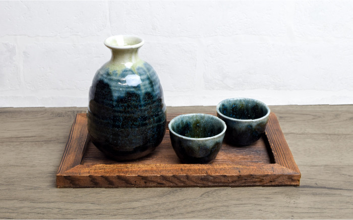 【美濃焼】高田焼 釉重ね酒器揃いヒスイ流しトレー付き【金陶苑…