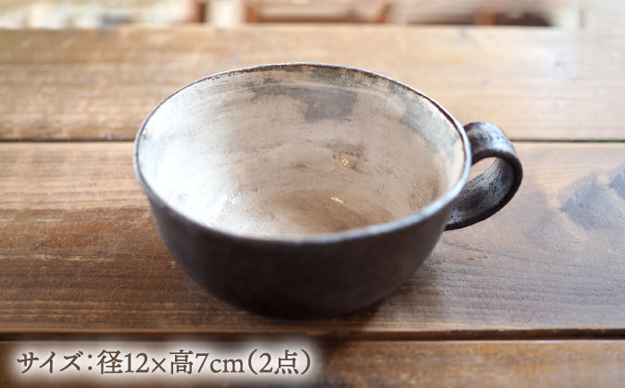 深鉢 皿 おしゃれ スープ マグ カップ 夫婦 陶器 電子レンジ ギフト 贈答 【美濃焼】銀黒スープカップ 2点 セット【リスの木食器工房】食器 ペア コップ [TCT012]