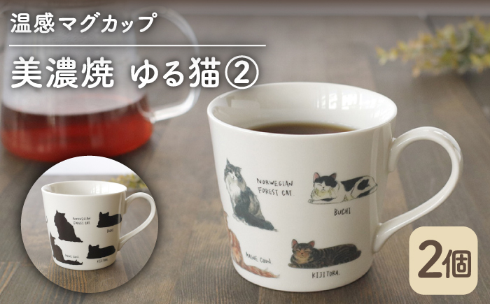 コップ ティーカップ セット 動物 猫 ねこ コラボ JIUJIU 【温度で変化する】【美濃焼】 温感 ネコ マグカップ (2個) 『ゆる猫 2』【丸モ高木陶器】 ≪多治見市≫ 食器 コーヒーカップ [TBA081]