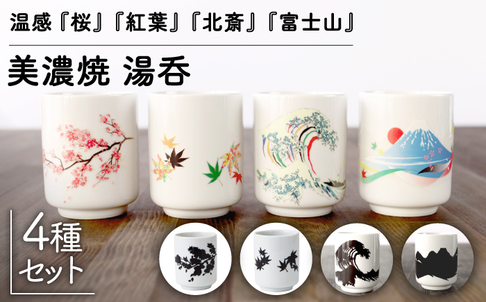 茶器 コップ 湯飲み セット お茶 和風 おしゃれ 【温度で変化する】【美濃焼】 湯呑 (4個) 『 桜 ・ 紅葉 ・ 北斎 ・ 富士山 』【丸モ高木陶器】 ≪多治見市≫ 食器 湯呑み [TBA118]