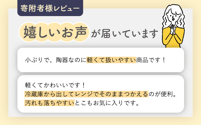 | 容量 | 【カラー】 ピンク、イエロー、グレー、ライトブルー、ネイビー 【内容】 ■レンジパックボウルS 本体 ×5点 サイズ:径10.7×高4.4cm 容量:250ml ■レンジパックボウルS フタ ×5点 サイズ:径11.2×高2cm 【対応機器】 電子レンジ○ / オーブン× / 食器洗浄機○ 【お申し込み前に必ずお読みください】 お届けする返礼品には個体差が生じる場合があります。下部記載の「個体差について」、「返礼品が届いたら」を必ずご一読のうえ、お申し込みください。 【色について】 商品写真はできる限り実物の色に近づけるよう徹底しておりますが、 お使いのモニター設定、お部屋の照明等により実際の商品と色味が異なる場合がございます。 【原料原産地】 土加工 : 多治見市産(10割) |