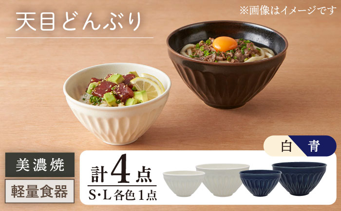 器 どんぶり ラーメン うどん 丼 サラダボウル お茶漬け 茶碗 セット \レビューキャンペーン実施中!!/【美濃焼】天目どんぶり S/Lサイズ ペア 4点セット 白×青【井澤コーポレーション】丼ぶり 軽量 [TBP050]