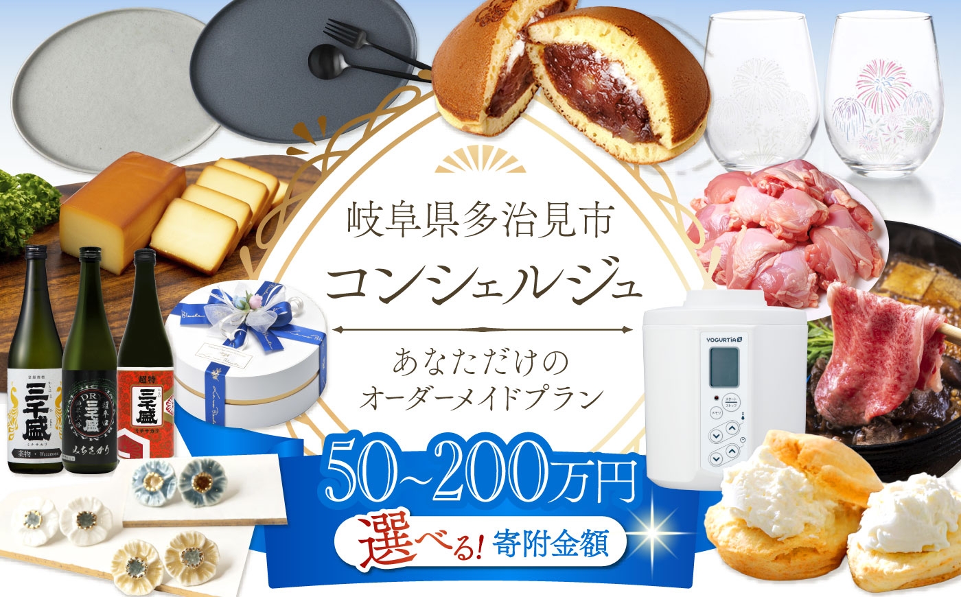 あなただけのオーダーメイドプランをご提案いたします! 美濃焼 グルメ スイーツ \寄附金額が選べる/【多治見市コンシェルジュ】返礼品おまかせ!寄附額50万円分-200万円分コース [TDA001]