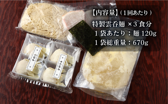 【3回定期便】【ご家庭用】特製雲呑麺 3食入り ※エコパッケージ…