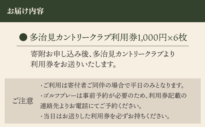 ゴルフ場 ゴルフ 利用券 チケット 岐阜県 多治見市 多治見カントリークラブ ゴルフ 平日利用券 6,000円分 チケット ゴルフ場 岐阜 多治見市/多治見カントリークラブ [TCC002]