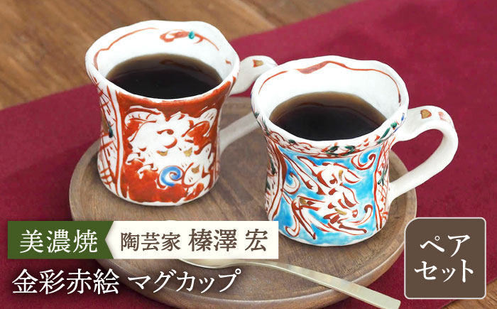 使いやすさにこだわった見た目も華やかなマグカップ! \レビューキャンペーン実施中!!/【美濃焼】陶芸家「榛澤 宏」金彩赤絵 マグカップ ペアセット【井澤コーポレーション】 [TBP066]