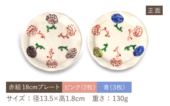 使いやすさにこだわった赤絵の器で食材が華やかに!! 【美濃焼】陶芸家「榛澤 宏」赤絵 花柄13cm 銘々皿 5枚セット【井澤コーポレーション】 [TBP067]