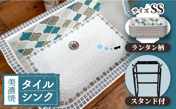 洗面 モザイクタイル 流し台 屋外 屋内 レトロ DIY 【美濃焼】 タイル シンク 〈スタンド付き〉ランタン柄 SSサイズ 【作善堂】(light-SS-0037-standset) [TCJ008]