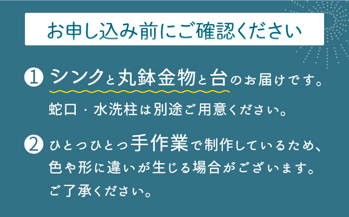 | 容量 | 作善堂の美濃焼タイルシンクとオリジナルシンクスタンド(黒)がセットの商品です。 【シンク】 重量 : 約 11.5kg 幅 : 560mm±10mm 高さ : 高さ 奥220(手前165)±10mm 奥行 : 375mm±10mm 排水芯(背面より):110mm 付属品 : 32mm丸鉢金物 材質 : タイル磁器質〈芯材/押出法ポリスチレンフォーム・セメント〉 ※オーバーフロー無し ※屋内外使用可(水を溜めての使用はご遠慮ください。) ※蛇口、水栓柱は必要であれば別途ご用意ください。 ※排水トラップ管は別途ご用意ください。 ※シンクを設置する土台(基礎)は平坦に調整してください。 ※材料の性質上目地の部分に小さなクラックが入る場合がありますが、水漏れは致しません。 ※目地を白い状態に保つには、使用後に綺麗な水で汚れを流しきり乾燥させてください。酸性系洗剤は使用しないでください。また数ヶ月に一度漂白剤で漂白すると白さが長持ちします。 ※ モニターの環境等によって、実際の色と違って見える場合があります。 ※ 背面にはタイルを貼っていません。 【スタンド(黒)】 大きさ:幅 570 × 奥行 368 × シンク底までの高さ 650(mm) 重量 : 約6kg 材質 : スチール製 塗装 : 2液型ウレタン高級塗装仕上げ ※サイズは±5mm程の誤差が出ます。 ※シンクは上に置くだけです。 ※強い力が加わったり、大地震などの不測の事態がおきますと、倒れる可能性があります。 ※下部の地面設置部分に片側2個の穴がありますので、設置場所によってはコンクリートアンカーボルトにて固定できます。 ※コンクリートアンカーボルト等の付属品はありません。シンクスタンドのみ付属します。 【お申し込み前に必ずお読みください】 お届けする返礼品には個体差が生じる場合があります。 下部記載の「個体差について」、「返礼品が届いたら」を必ずご一読のうえ、お申し込みください。 【色について】 商品写真はできる限り実物の色に近づけるよう徹底しておりますが、 お使いのモニター設定、お部屋の照明等により実際の商品と色味が異なる場合がございます。 【原料原産地】 タイル:多治見市産 【加工地】 多治見市笠原町 |