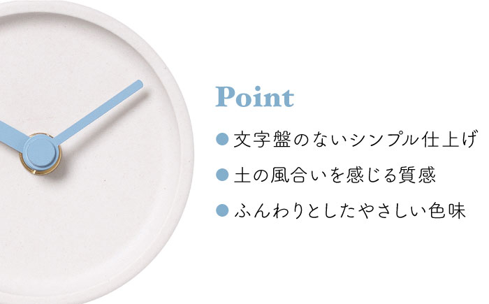 naturalシリーズは土に色をつけており、ふんわりとしたやさしい色をお楽しみいただけます。また釉薬がかかっていないことで、プレス成形ならではのシャープなエッジを魅力的にみせています。あえて文字盤をなくしたことで、シンプルでインテリアに馴染む時計になっています。