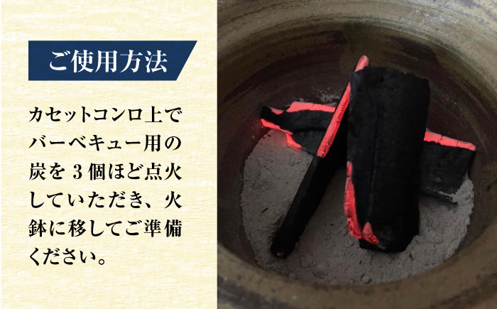 ご使用の際には、カセットコンロ上でバーベキュー用のすみを3個ほど点火していただき、火鉢に移して頂ければ簡単にバーベキューの準備が出来ます。