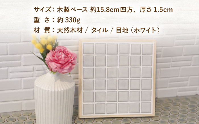 ◆日々の暮らしを居心地よく彩り豊かに一人分のカフェトレーや鍋敷として活躍するポットマットです。木製ベースに22mm角のRocheタイルを使ってデザインしました。タイルの色はオフホワイト を使用しています。目地の色はホワイトです。飾っておくだけでもキッチンが華やかになりますよ♪タイル部分はティーポットや急須など、熱いものを置いても大丈夫です。(木枠部分には熱いものが乗らない様ご注意下さい)