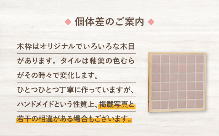木枠はオリジナルでいろいろな木目があります。タイルは釉薬の色むらがその時々で変化します。ひとつひとつ丁寧に作っていますが、ハンドメイドという性質上、掲載写真と若干の相違がある場合もございます。