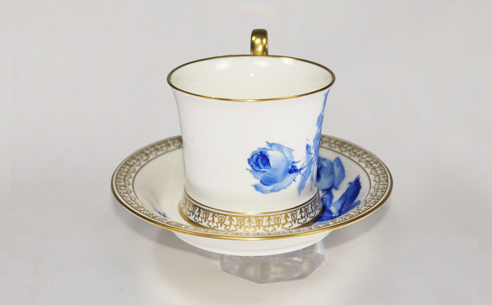 チョイス限定 宮内庁御用承りの高品質な洋食器メーカーで至福のひと時を コーヒーカップ&ソーサー 手書き ロイヤルブルーローズ 【ナカヤマ販売】 [TAU026]