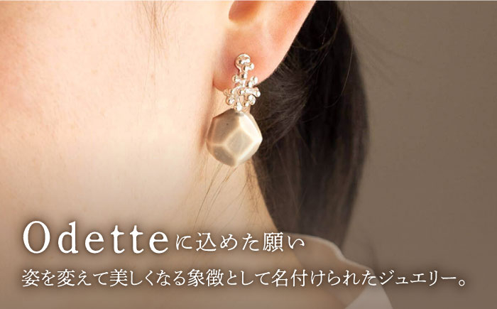 ~廃棄の釉薬の集まりから生まれたタイル・ジュエリー~廃棄する釉薬たちを混ぜ合わせ、新しく彩られたニュアンス色のジュエリーたち。Odette[オデット]とは、「白鳥の湖」に登場する悪魔の呪いをかけられた娘の名前。彼女が、最後には魔法がとけて人間に戻るストーリーのように、姿を変えて美しくなる象徴として名付けられたジュエリー。三角と四角の2パターンございます。本品は、四角のジュエリーです。製品について・金属アレルギー非対応 金属部分には一般的なジュエリー、またアクセサリー素材のものを使用しております。お肌に合わないと感じた場合にはご使用を中止し、専門医にご相談ください。・ジュエリーは大変デリケートな商品です。 変色や劣化を防ぐため、ご使用後は柔らかい布などで汚れ拭き取り、できるだけ空気に触れないよう保管することをおすすめします。(ゴールドメッキ金彩は、金が剥がれる恐れがありますので強くこすらないでください。)・メッキの施してないシルバー製品は空気に触れることで変色(硫化)する為、日常の保管では空気に触れないようにする、または専用のクロスなどで拭くことで輝きを保つことができます。・本件の陶磁器は、衝撃を与えると割れる可能性がございます。取り扱いには十分にご注意ください。・高温になる所でのご使用はお控えください。・すべて手作業で作られているため、個体差がございます。ひとつひとつ違った表情をお楽しみください。※こちらの商品はアップサイクルのため、カラー、釉薬、形、大きさなどがひとつひとつ異なります。※パソコンモニターと実物の商品のカラーが異なる場合があります。※また、強い衝撃を与えると割れる可能性があります。※高温になると金具が外れる恐れがあります。