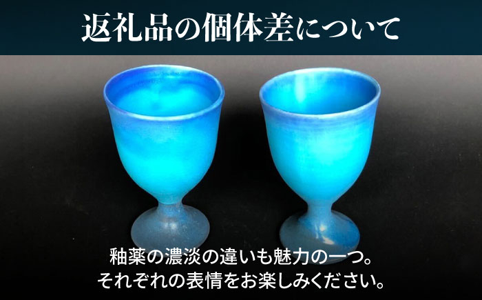 鮮やかなブルーが一目引くワインカップ2個セットです。