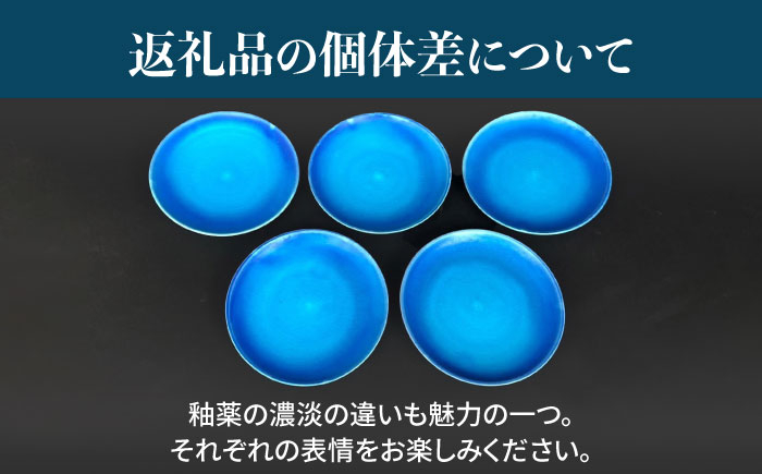 鮮やかなブルーが一目引くプレート大・中の4点セットです。