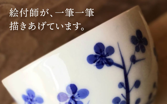 小さい梅の花に春を感じていただけるよう、絵付師が一つ一つ描きあげた梅模様の煎茶碗です。