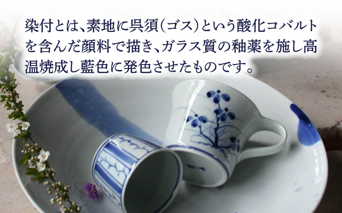 素地に呉須(ゴス)という酸化コバルトを含んだ顔料で描き、ガラス質の釉薬を施し高温焼成し藍色に発色させたものです。