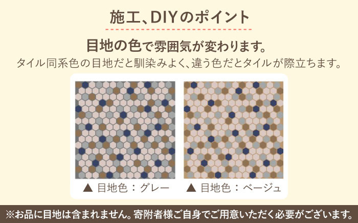 タイルはベージュピンク、ライトグレー、ディープキャメル 、ネイビーをランダムにMIXしています。