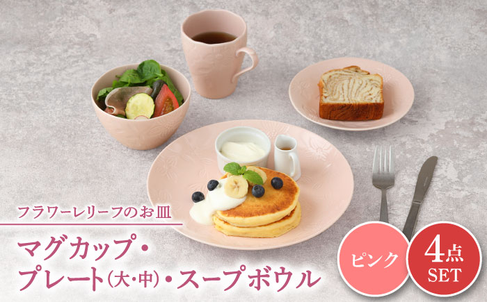 おしゃれな花柄で食卓が華やぐ 【美濃焼】 マグカップ プレート スープボウル 食器 4点 セット フローラル ピンク 【丸半製陶所】 [TDG016]