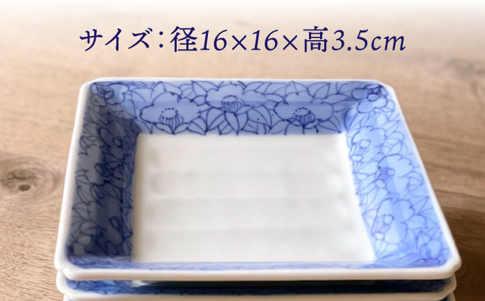 熟練の技が光る四角いプレート5枚! 【美濃焼】染付 さざんか 四角皿 5枚 【豊泉窯】 プレート [TBT009]