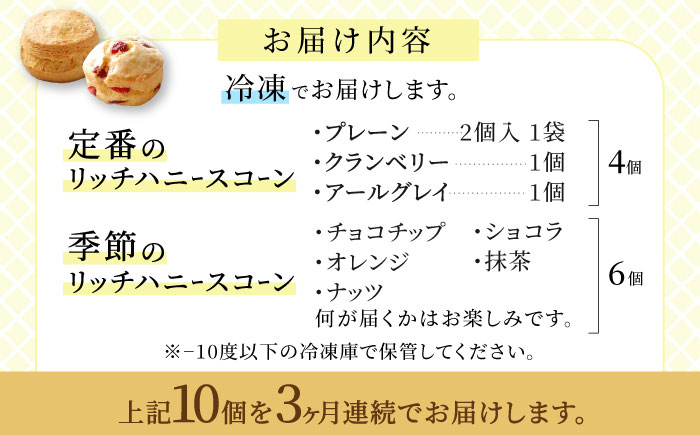 スイーツ スコーン 個包装 詰め合わせ おまかせ 朝食 おやつ 手土産 冷凍 【3回定期便】 リッチハニースコーン アソート 10個 スイーツ 洋菓子 焼菓子 多治見市/famfam [TAK011]