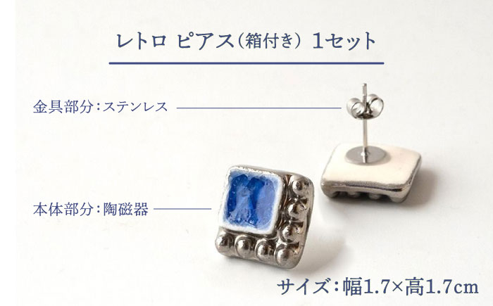 美しくも温かみのある「やきものアクセサリー」 【美濃焼】 レトロ ピアス コバルト×銀 【七窯社】 [TAP062]