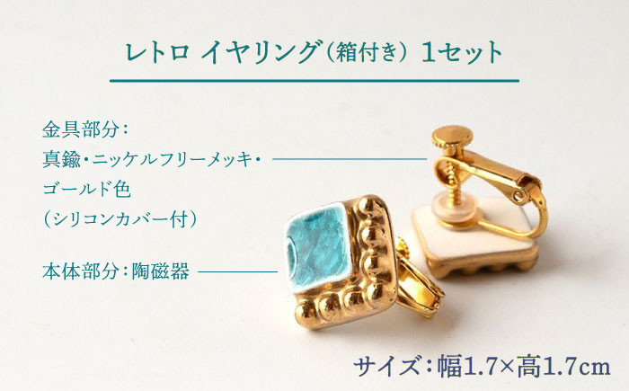 美しくも温かみのある「やきものアクセサリー」 【美濃焼】 レトロ イヤリング ターコイズ×金 【七窯社】 [TAP063]