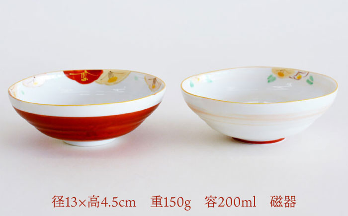 赤絵 流水椿 小鉢ペアは岐阜県神社庁御用窯である岐阜県多治見市の蔵珍窯で作られた器です。