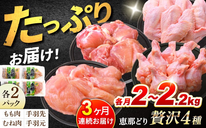 産地直送!飼料に抗生物質を使用しない国産銘柄鶏です! 【3回定期便】 【冷凍】 恵那どり 贅沢4種 詰め合わせ (もも肉2枚 むね肉2枚 手羽先10本 手羽元10本) 小分け セット (約2~2.2kg×3回) 鳥肉 鶏肉 とりにく 冷凍 手羽 多治見市ふるさと納税 [TEZ014]