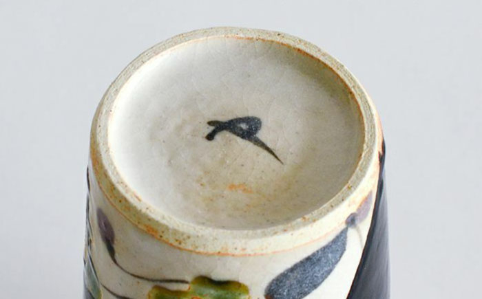 美濃六銘窯の一つ玉山窯にて制作され、岐阜県重要無形文化財保持者玉置保夫先生監修の「黒織部焼酎カップ」です。