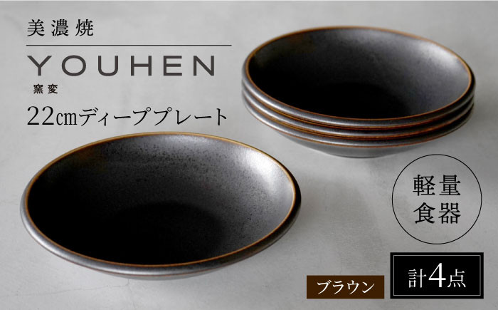 窯の中で複雑に変化する色合い、美濃の手仕事を感じられる唯一無二のうつわ。 【美濃焼】[軽量食器] YOUHEN 22cm ディーププレート 4枚セット (ブラウン) 多治見市 / 井澤コーポレーション 食器 プレート 皿 [TBP201]