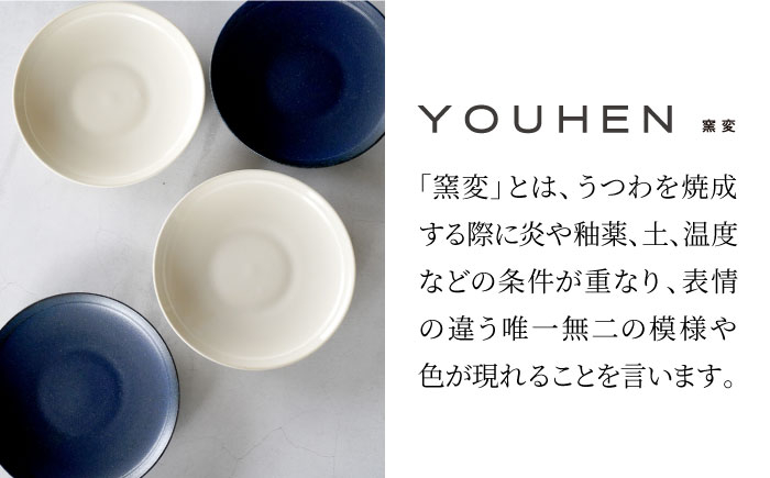 窯の中で複雑に変化する色合い、美濃の手仕事を感じられる唯一無二のうつわ。 \レビューキャンペーン実施中!!/【美濃焼】[軽量食器] YOUHEN 25cm プレート 4枚セット (ホワイト×2 ネイビー×2) 多治見市 / 井澤コーポレーション 食器 プレート 皿 [TBP211]