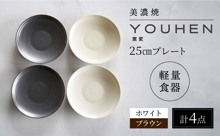 窯の中で複雑に変化する色合い、美濃の手仕事を感じられる唯一無二のうつわ。 \レビューキャンペーン実施中!!/【美濃焼】[軽量食器] YOUHEN 25cm プレート 4枚セット (ホワイト×2 ブラウン×2) 多治見市 / 井澤コーポレーション 食器 プレート 皿 [TBP212]