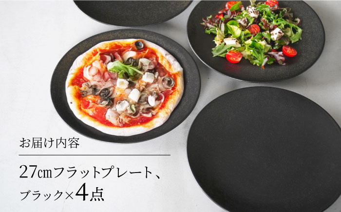 食器 プレート 皿 27cm 4枚 軽量 軽い レンジ可 レンジ対応 食洗機可 食洗器対応 スタッキング 美濃焼 焼き物 やきもの 送料無料 ブラック 黒