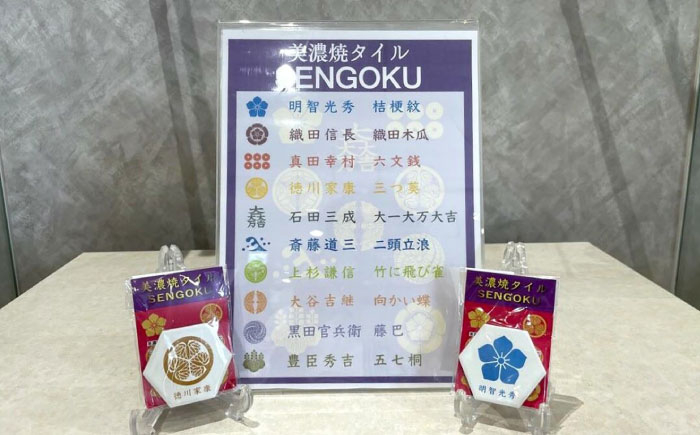 深い歴史を有する美濃焼、そんな美濃焼の伝統が息づく「美濃焼タイル」に岐阜県にゆかりのある戦国武将の家紋がデザインされた製品です。美濃焼の歴史とともに戦国時代の歴史を感じることのできる商品です。