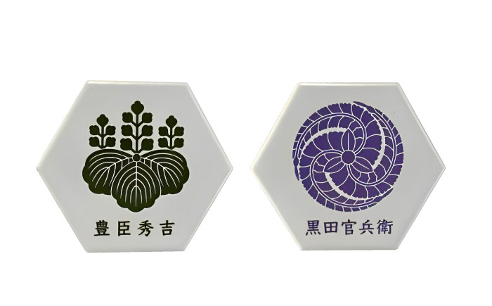六角タイルは戦国武将英傑達10名の家紋がそれぞれデザインされています。