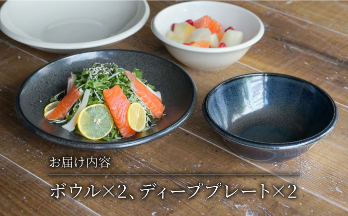 窯の中で複雑に変化する色合い、美濃の手仕事を感じられる唯一無二のうつわ。 \レビューキャンペーン実施中!!/【美濃焼】[軽量食器] YOUHEN ボウル & 22cm ディーププレート×2 ペアセット (ホワイト/ブラック) 多治見市 / 井澤コーポレーション 食器 プレート 皿 [TBP229]